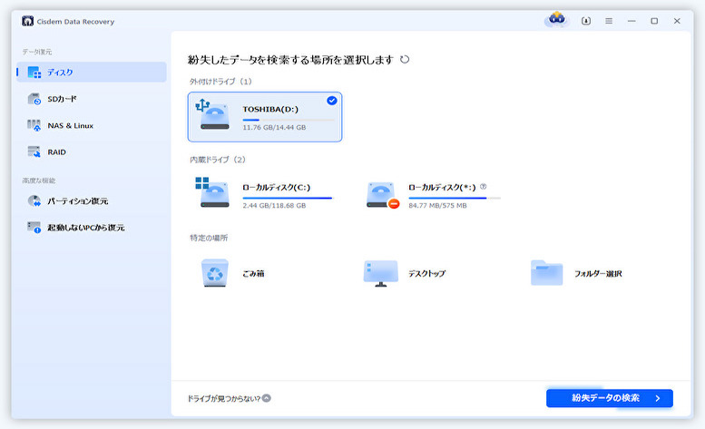Rawパーティション、ディスクはRAWや、「メディア/ドライブはフォーマットされていません。今すぐフォーマットしますか?」と表示されている?心配いりません。Cisdem Data Recoveryはアクセスできないストレージデバイスから復元できる項目をすべて探し出し、復元します。