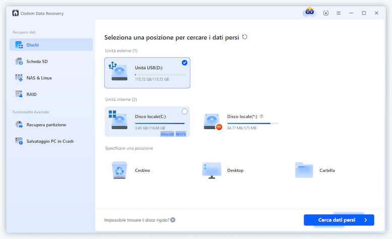 Seleziona la posizione in cui i tuoi dati sono stati persi e avvia la scansione.