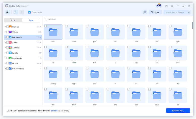 This data recovery tool can recover almost all file types: document, photo, video, audio, archive, email and more file formats.