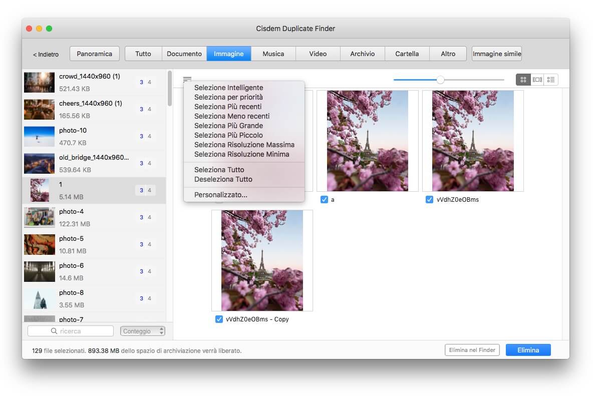 - Seleziona automaticamente i duplicati da rimuovere in massa con un solo clic