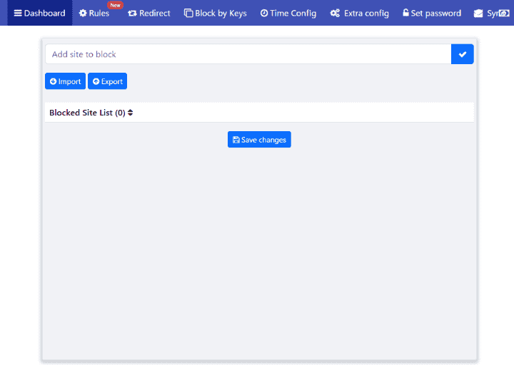 - Dashboardに入ります。ブロックしたいサイトをテキストボックスに入力し、右のチェックボタンをクリックします。