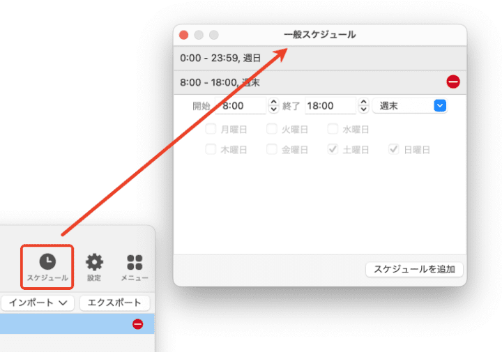 - スケジュール機能でサイトブロックする時間帯と曜日を指定できる
