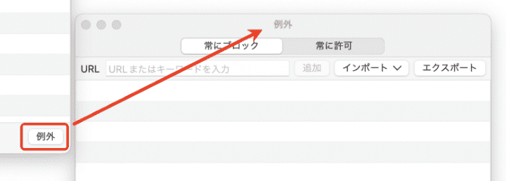 ウェブブロック画面の右下隅にある「例外」ボタンを押して、「常にブロック」と「常に許可」リストを管理できます。「例外」リストは、スケジュールで管理されませんので、いつまでもブロック/許可されるままになります。広告や有害サイトを常にブロックし、勉強/仕事用サイトを常に許可にしましょう。