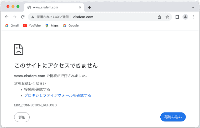 - Chromeでブロックしたサイトにアクセスして、効果を確認しましょう。「このサイトにアクセスできません。XXXで接続が拒否されました。」が表示されます。