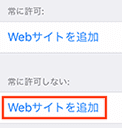 - 「常に許可しない」の「Webサイトを追加」をタップして、サイトのURLを入力します。アクセス制限したいWebサイトを複数追加できます。