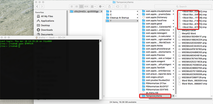 - Ouvrez les "Temporaryitems".