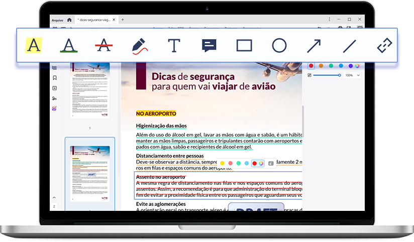 Adicione comentários e anotações aos PDFs para compartilhar ideias ou destacar pontos importantes. O Cisdem PDFMaster permite que os usuários destaquem, sublinhem, rabisquem ou risquem texto para melhorar a legibilidade. Adicione desenhos à mão livre rapidamente e exclua com a borracha. Adicione facilmente caixas de texto e notas ancoradas para se comunicar com outras pessoas. Insira retângulos, ovais, setas ou linhas e meça objetos em um PDF sem esforço. Adicione também um carimbo ou assinatura, se desejar.